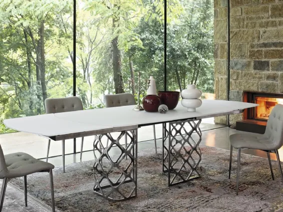 These furnishings are the center of socialization at home: around the table we gather with friends and relatives for moments in company as well as for meals. With the extendable tables that we offer in our showroom, you can see firsthand the most exclusive Reflex solutions and find the one that's right for you. Tables are essential furnishings in every home, as they optimize the dining room, the kitchen as well as an open space living with practicality and design. One of the glass dining models that we propose certainly has its right seat in rooms with design references, furnishing them with rationality and logic. To avoid making mistakes, purchasing the ideal solutions for you must consider the style of the furniture, the size of the room and dedicated occupations. The quality of the materials and the innovation of the production processes make this Slide extendable table model by Reflex the perfect purchase to complete your home.