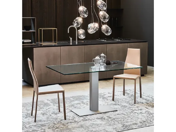 Impressive design table made of glass with extendable top